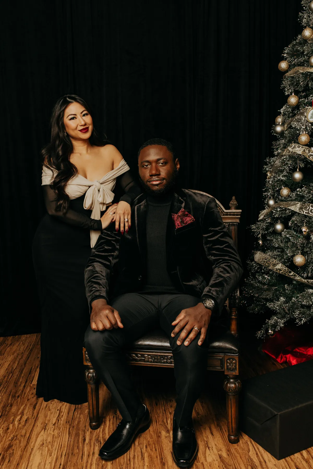 We recommended dressing for the season in formal attire. Ideally reds, emeralds, blacks, or golds. It's also the perfect excuse to break out your luxurious feeling fabrics like satin and velvet.